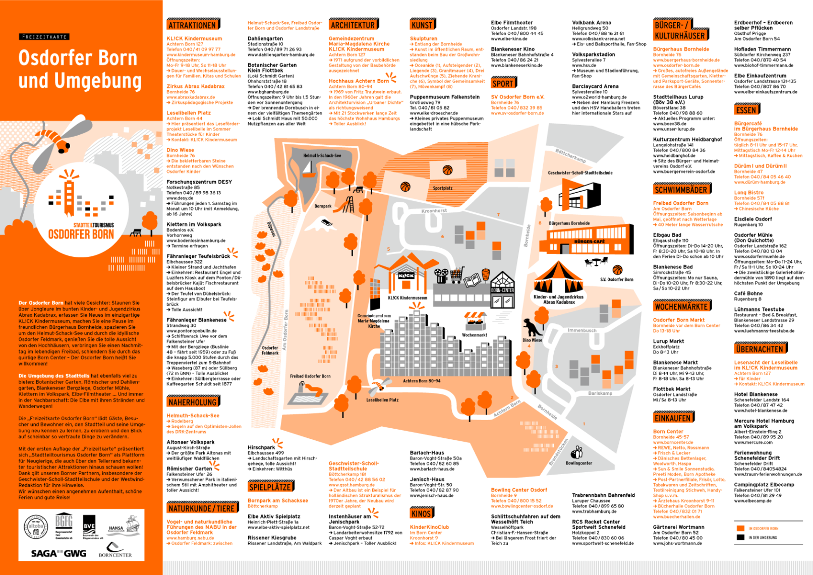 Zusammengefasst in einem Stadtteilplan und der Website Stadtteiltourimus Osdorf bekommen die „Touristen“ einen umfassenden Überblick über die Attraktionen im Stadtteil.